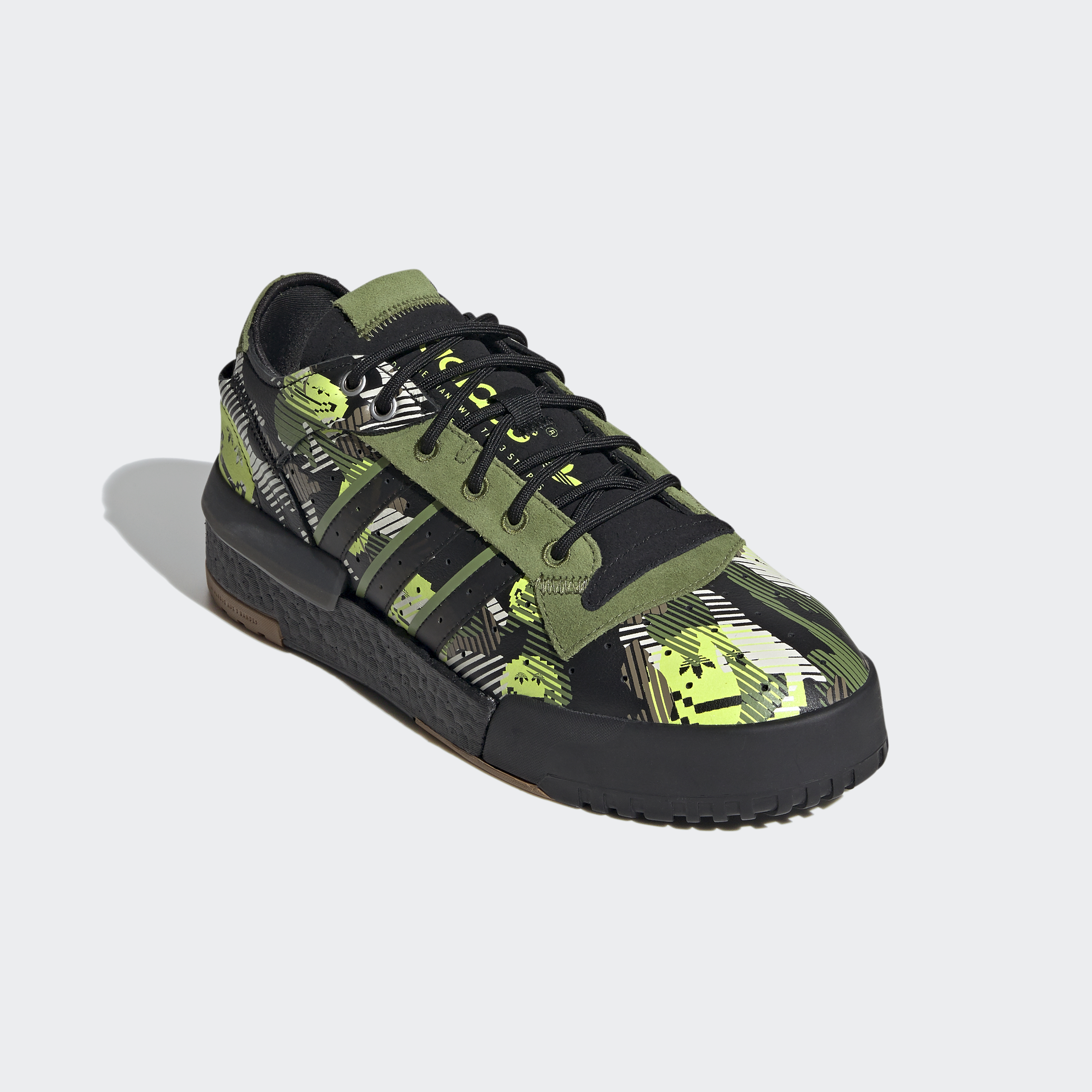 What would '80s shoe designers have done with modern technology? A thought experiment becomes reality in these adidas Rivalry RM Low Shoes. Stripped-down and rebuilt, the shoes have a Boost midsole to emphasise comfort. A digital camouflage print incorporates smiling emojis.